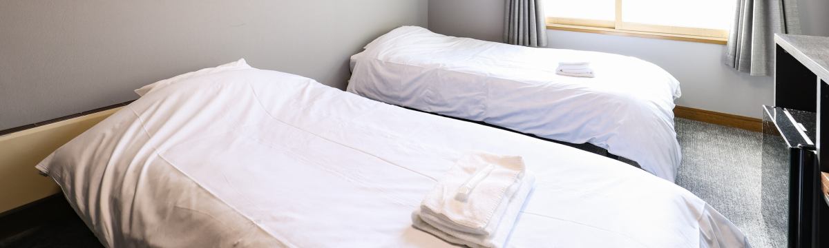 シンプルで清潔感のある空間に、ゆったりとしたベッドを2台ご用意し、友人同士やカップル、ご夫婦でのご利用に最適です。