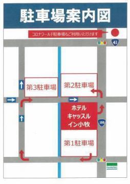 備考 | お車でのアクセス ・東名・名神高速 「小牧IC」 ⇒ 「国道41号線 名古屋方面」 ⇒ 信号2つ目左折すぐ。 ・名古屋高速 「小牧南IC」 ⇒ 「国道41号線 犬山方面」 ⇒ 間々本町信号右折すぐ。 【駐車場のご案内】 当ホテルの駐車場は約60台分ございますが、2階居酒屋との共同駐車場です。満車になり次第、誠に恐れ入りますが、歩いて10分ほどの小牧コロナワールド駐車場へ駐車いただくことになりますのであらかじめご了承くださいませ。 |
