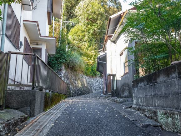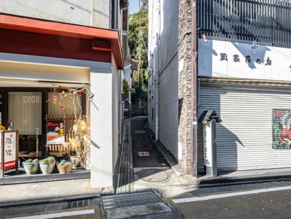 Turn left of Hie Shrine and enter the alley between the honey shop and the crafts shop. - ③