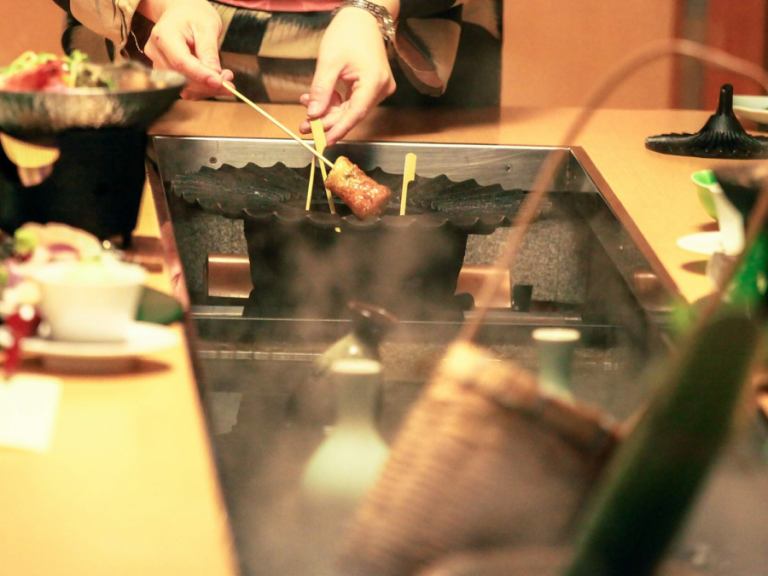 Lava-grilled Japanese black beef (high-class kaiseki cuisine (example))