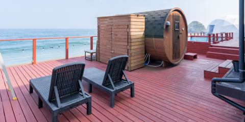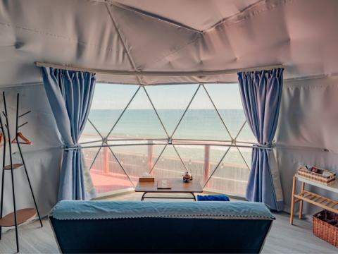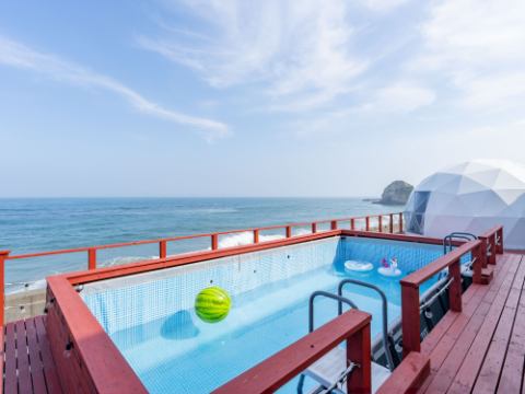수평선을 바라보는 절경 욕조가 있는 럭셔리 글램핑