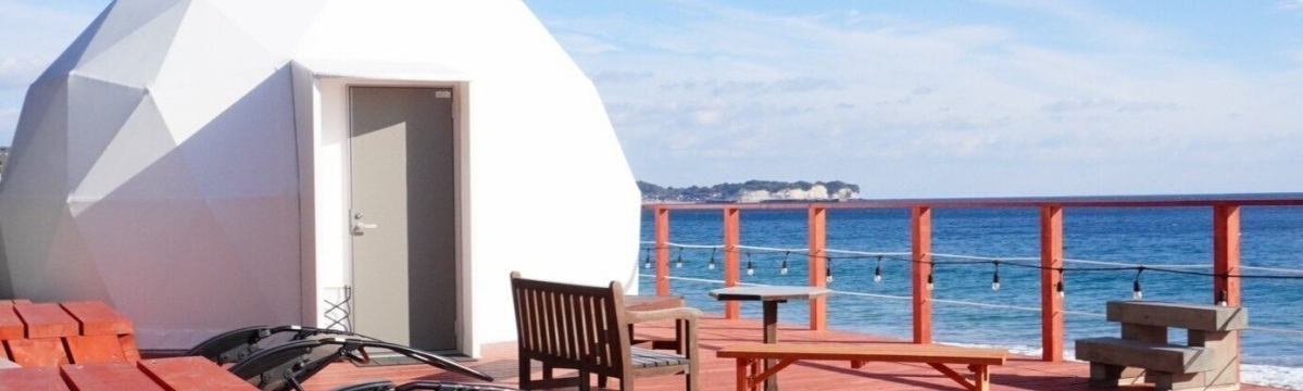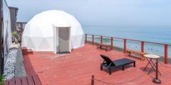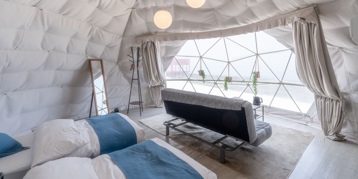 ウッドデッキ上に設置されたドームテントからは、より海に近いロケーションでのオーシャングランピングを満喫できます。