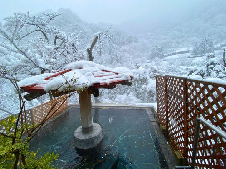 【scenery】The contrast between blue and white shines beautifully, a spectacular view wrapped in snow makeup.Unazuki dam with a winter expression.
