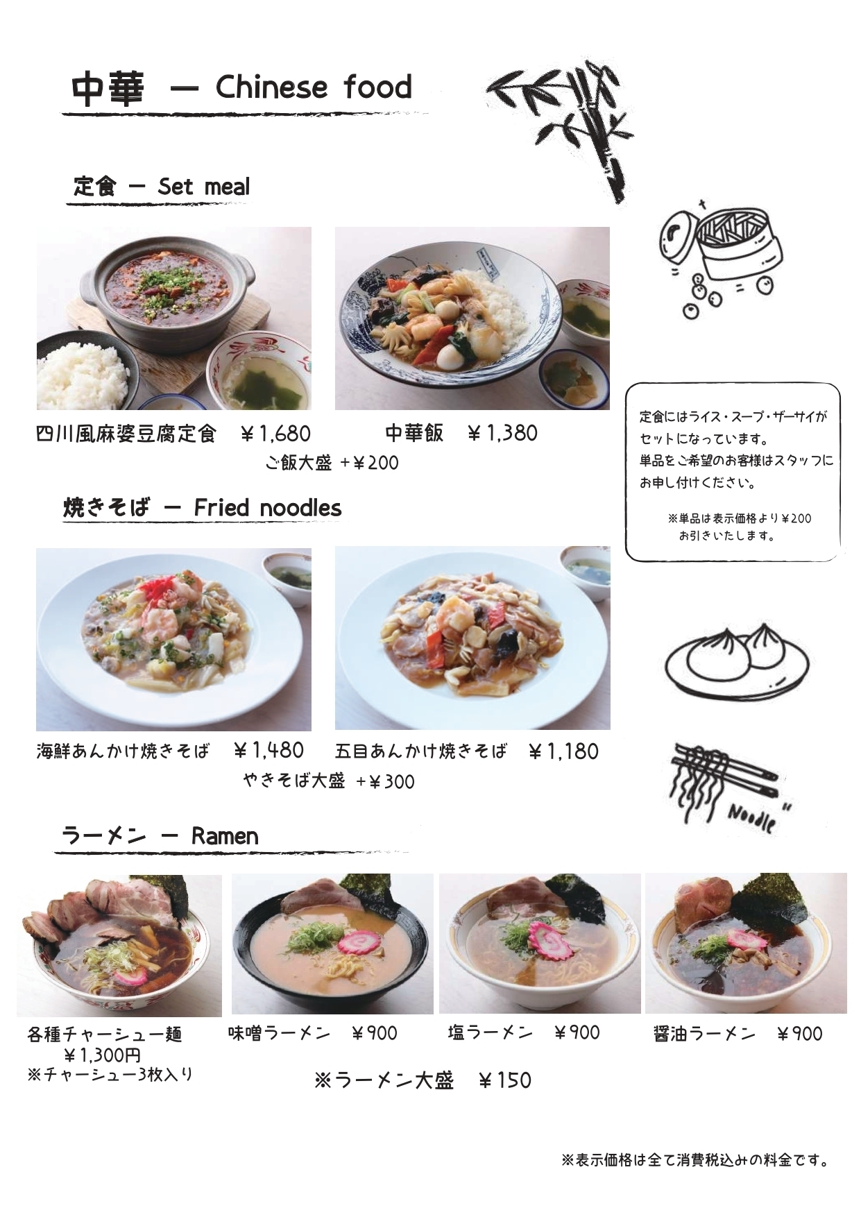 我們有日式、西式和中式菜單可供點餐。