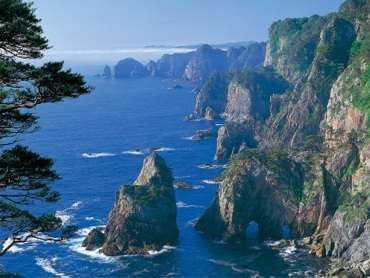 바다의 알프스"키타야마자키"높이 200m의 절벽에 기암 괴석, 크고 작은 다양한 해식동굴과 역동적인 해안선이 약 8km에 이르고 있습니다.자연의 숨결을 느끼는 봄, 때로는 흐릿한 여름 바다, 단풍의 아름다운 가을, 그리고 수묵화와 같은 설경.언제 봐도 매력 넘치는 키타야마자키 는, (공재) 일본 교통공사 의 전국 관광자원평가 “자연 자원 해안·곶의 부”에서 최고 랭크의 특A급에 평가된 경승지입니다.