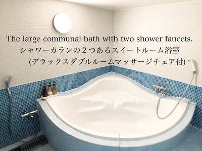 なお、当館のマッサージチェア付きスイートルームは、ご家族でお入りいただけるほどの大きな浴室になっております。