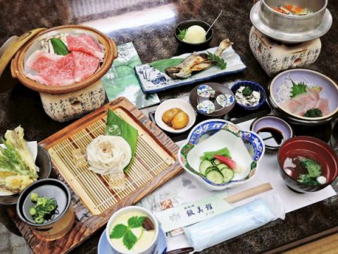 这家旅馆位于两个合掌造风格的村庄之间,坐落在风景秀丽的庄川峡岸边。