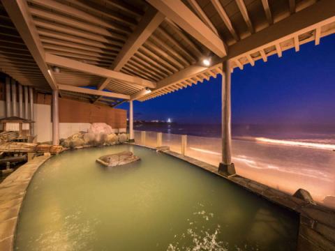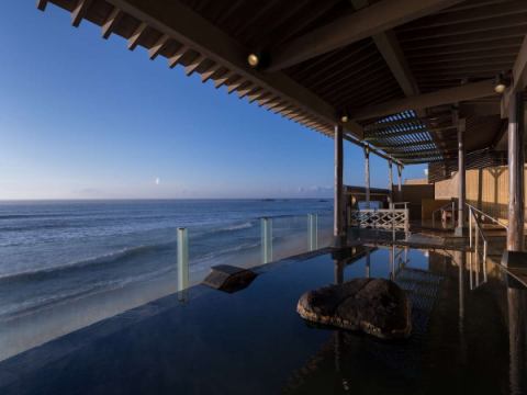 享受輕鬆的時光,欣賞太平洋和歷史悠久的潮之湯溫泉的壯麗景色。