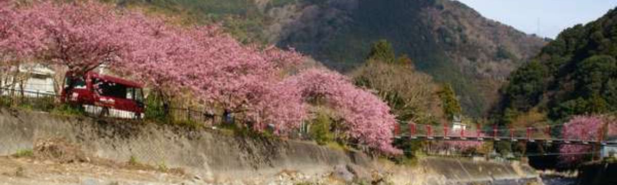 Kawazu Cherry Blossom Festival is held in February. The photo shows the row of cherry trees in front of the facility.