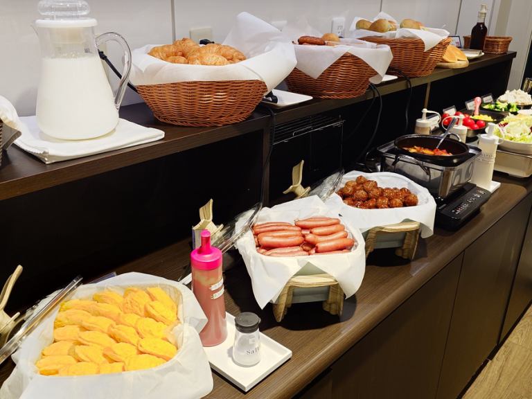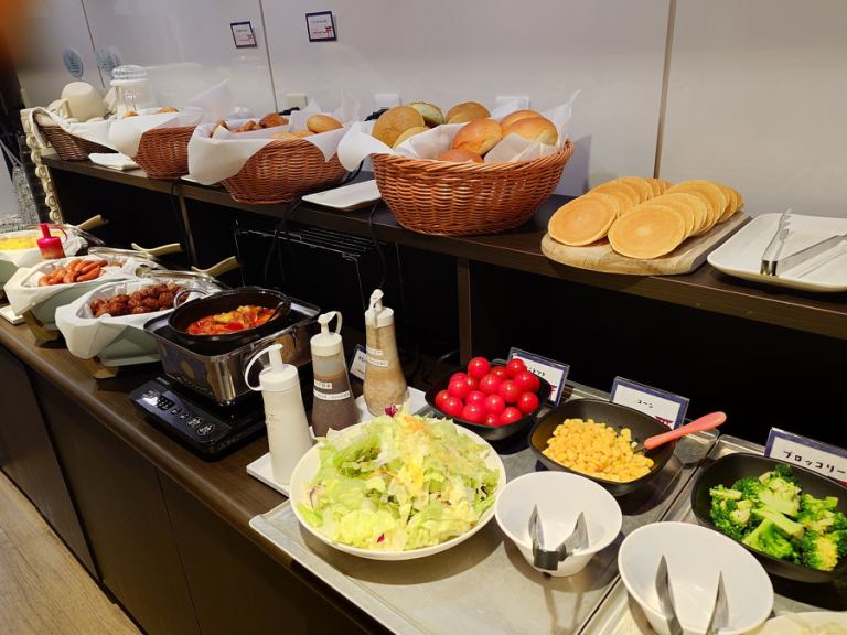 令人興奮的早餐選擇!麵包、熱菜和沙拉都可以!…