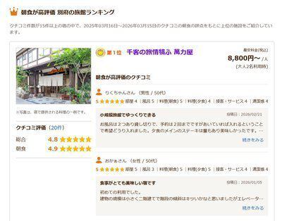 朝食が高評価 別府の宿ランキング