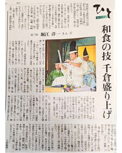 先日、政右ヱ門の亭主が「料理と庖丁式にかける想い」について、読売新聞(千葉地域版)に取材・掲載されました。