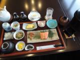 내용 | 강 생선 소금 구이 / 토사 쿠로우시 소고기 의 도판구이 / 가다랭이 타타키 / 튀김 / 조림 / 식초 / 화분 또는 과일 / 밥 / 미소시루(된장국) |