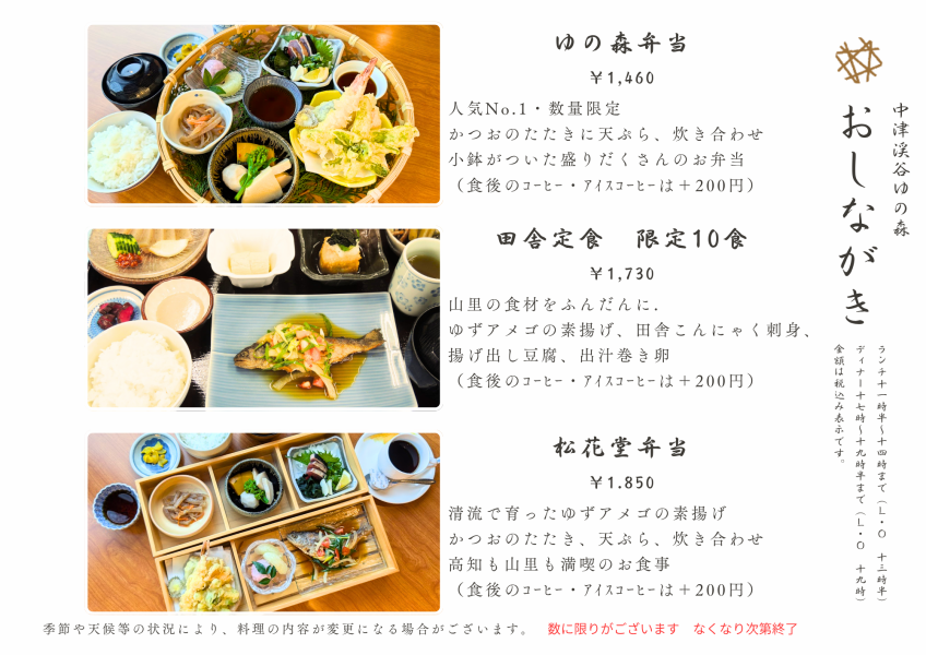영업 시간 | 【점심 시간】11:30부터 14:00(13:30 마지막 주문) 【저녁 시간】17:00~19:30(19:00 마지막 주문) |