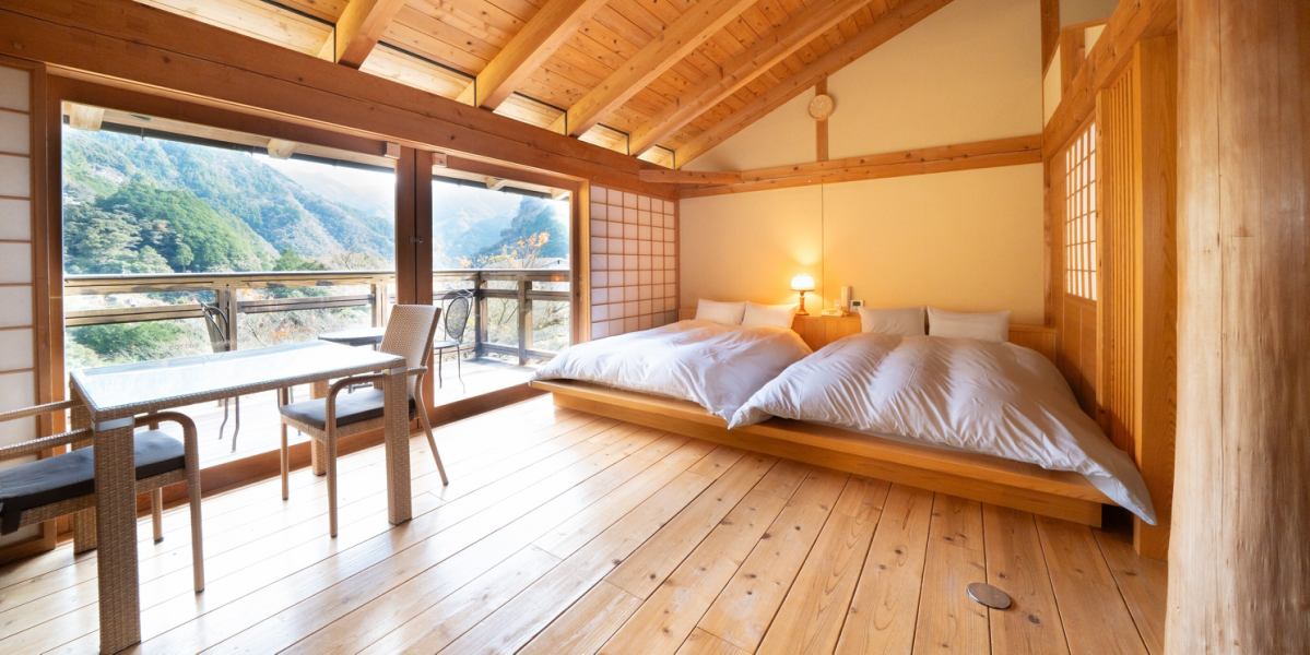 備考 | ・コテージには急な階段がございますので、お体のご不自由な方がおられましたら、和室へご変更をお願いいたします。 ・内風呂は温泉ではございません。 ・お子様のご宿泊はご遠慮いただいております。 |
