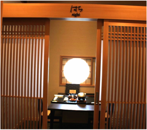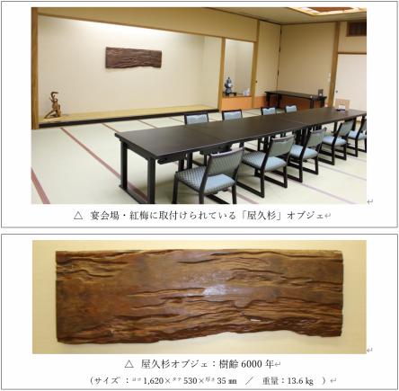 (上) △ 宴会場・紅梅に取付けられている「屋久杉」オブジェ