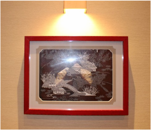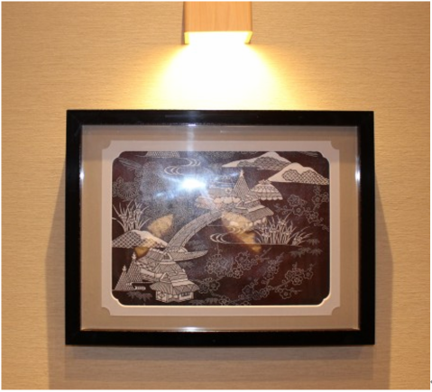 △ 装飾品・「伊勢型額」(根来調黒枠) - B-17 *** 小間食事処「萩-5番および8番:月見障子」解説 ***