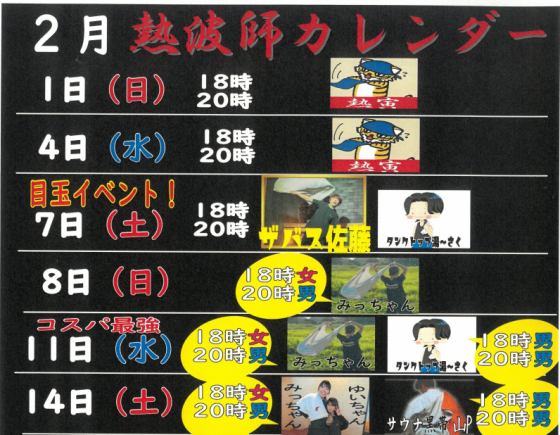 令和8年2月前半 熱波師カレンダー - 熱波師カレンダー