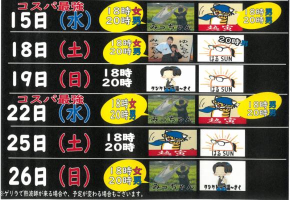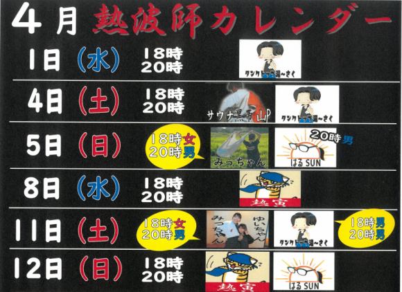 當日往返溫泉「太陽之湯」熱浪大師訊息本店獨有的Saenabama和其他活躍氣氛的Saenabama