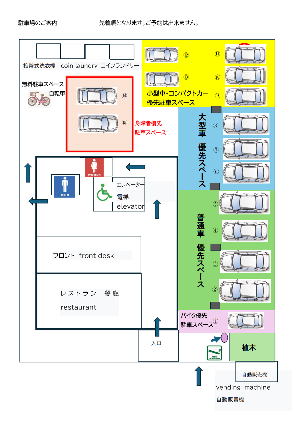 有料駐車場有り / 15台駐車可能(身障者用スペース:2台)