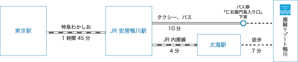 비고 | ※체크인 시오사이 리조트 카모가와 의 프런트 데스크에서 실시합니다. 후토미 역 에서 자동차로 약 10분. 【픽업 정보】 후토미 역 에서 송영을 실시하고 있으므로, 송영을 희망하시는 경우는 사전에 연락해 주십시오. (※숙박 일의 3일 전까지) |
