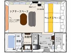 We have rooms with various concepts, such as the first "pet-friendly room" in Kyoto Arashiyama and a "theater room with a 120-inch projector."