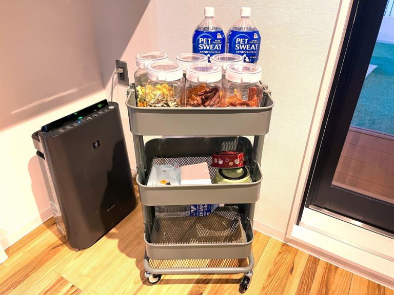 ペット同伴ルームにはゲージとフードボウル、ア…