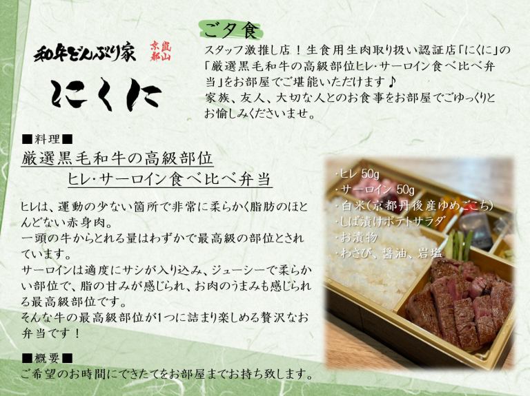 《嵐山にくに》の厳選黒毛和牛の高級部位ヒレ・…