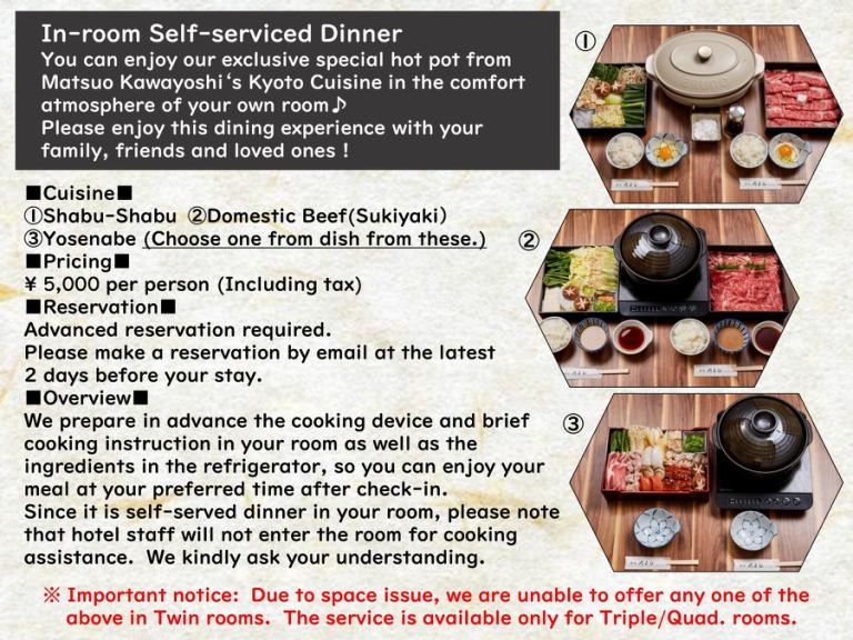 「京料理松尾川よし」のお鍋をお部屋で召し上がることができます。(すき焼き)