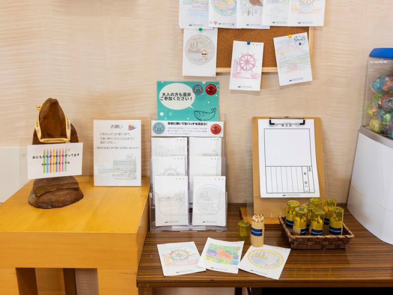 As you pass through the entrance, you will be greeted by a large steering wheel, typical of a marina hotel.This is a recommended photo spot within the facility.