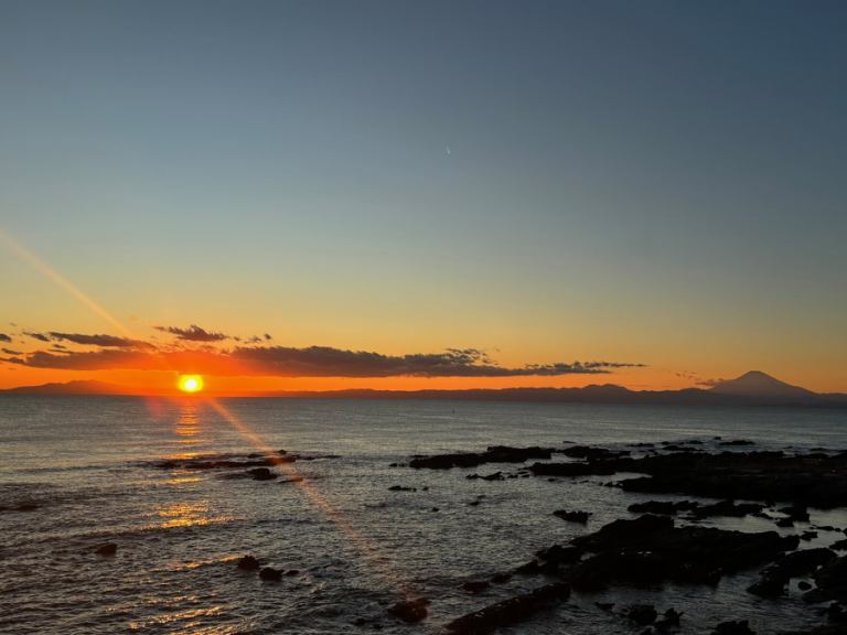 お部屋から見える夕陽と富士山。横須賀市佐島は…