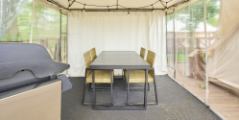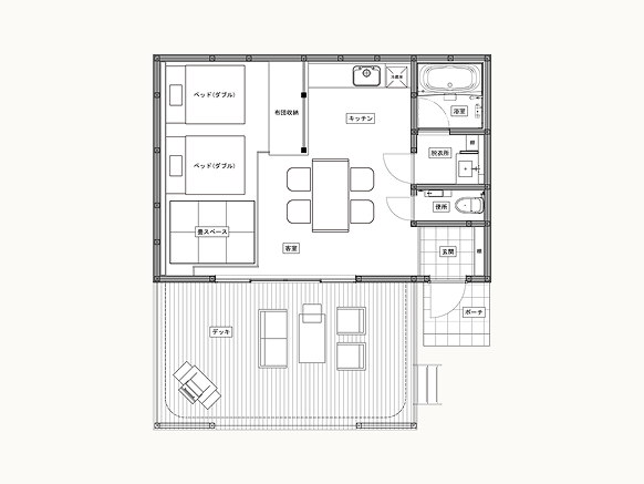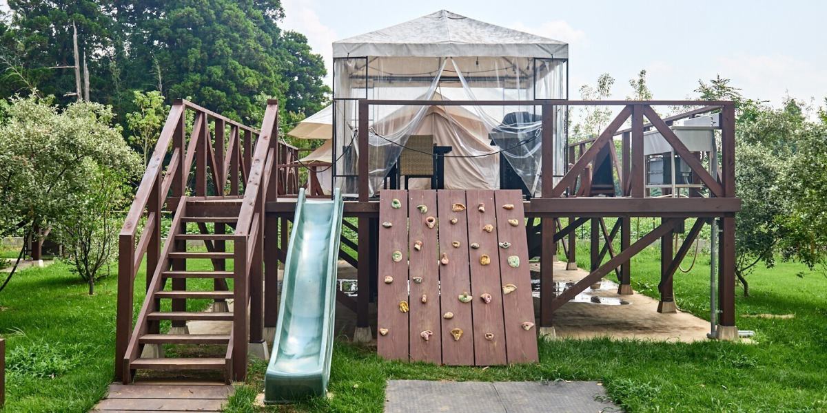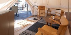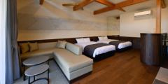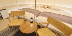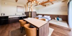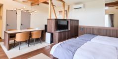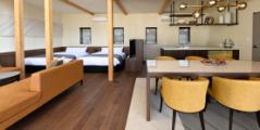 객실 설비‧비품 | 목욕 / 서양식 화장실 / 부엌 / 독립 세면대 / 더블베드×2 / 이불/ 다다미 공간 / 실내 식탁 / 실내 다이닝 의자 × 4 / TV/ 에어컨 / 냉동 냉장고 / 가습 공기 청정기 / 드라이어 / 전기 주전자 / 휴대용 램프 / 2구 버너 스토브 / 다이닝 데크 테이블 / 다이닝 데크 소파 / 다이닝 데크 의자×2 / 다이닝 사이드 테이블/ 다이닝 사이드 의자 / 티피(모닥불)/ Wi-Fi |