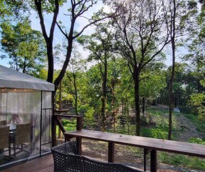 テント棟にはテント以外にお食事場所のテラスがありそちらをリビングルームの様にお使いください。