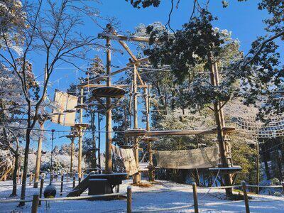 アスレチックエリアや施設のあちこちが、白くやさしく包まれ、