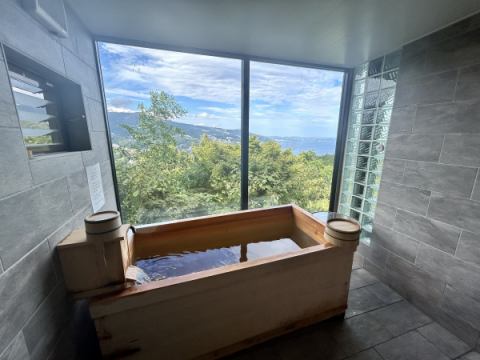 아타미 의 바다와 거리가 보이는 히노키의 온천탕으로 평소의 피로를 풀 수 있습니다.