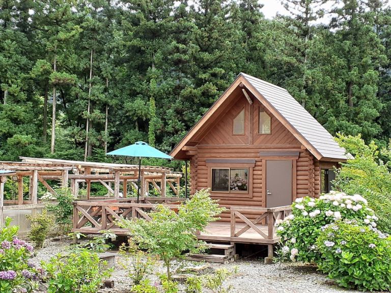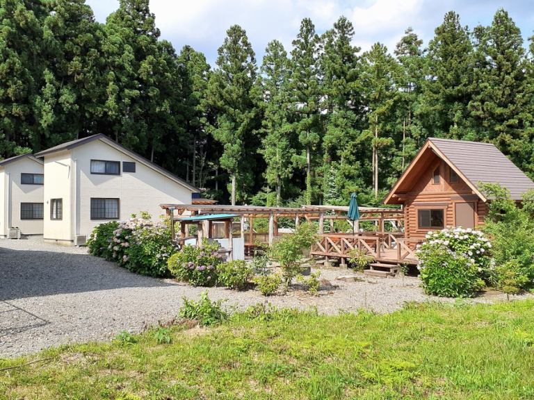 <花园>这是一栋被树木环绕的木屋和阁楼式房屋。步行套餐(^^!
