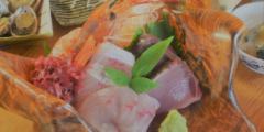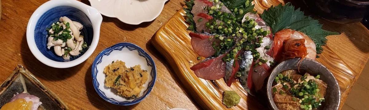 Abundant local sake and fresh local fish