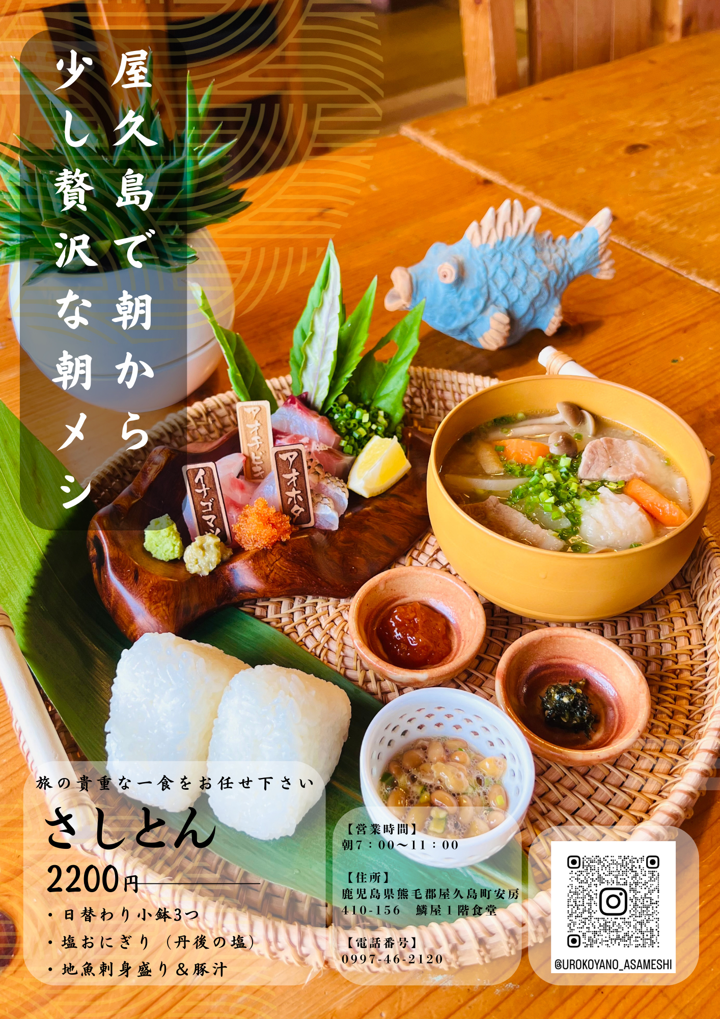 우로코야 1층의 아침 식사 전문점 「우로코야 의 아침 메시」는, 숙박의 손님은 물론, 누구나 부담없이 이용하실 수 있는 아침 식사의 가게입니다.