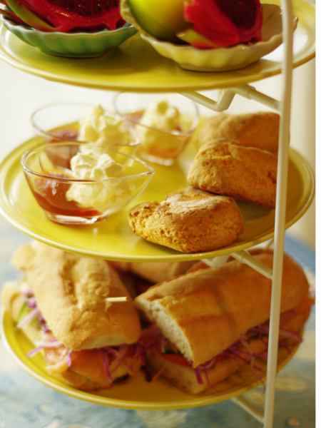 下午茶 | 自製甜點和司康,自製果醬,用島上食材製作的義大利麵和三明治,紅茶 |