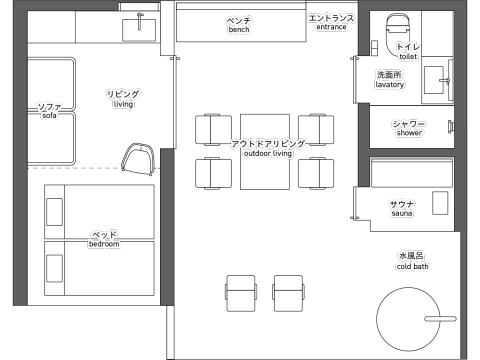 YAKEI SUITE 가 자랑하는 아웃도어 럭셔리한 객실에서 보내고 오감으로 자연을 마음껏 느껴보세요.