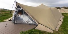 「LAND CAVE」에서는, 바람이나 비의 소리를 천 한 장 넘어 체감할 수 있는 등,