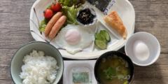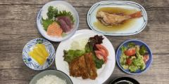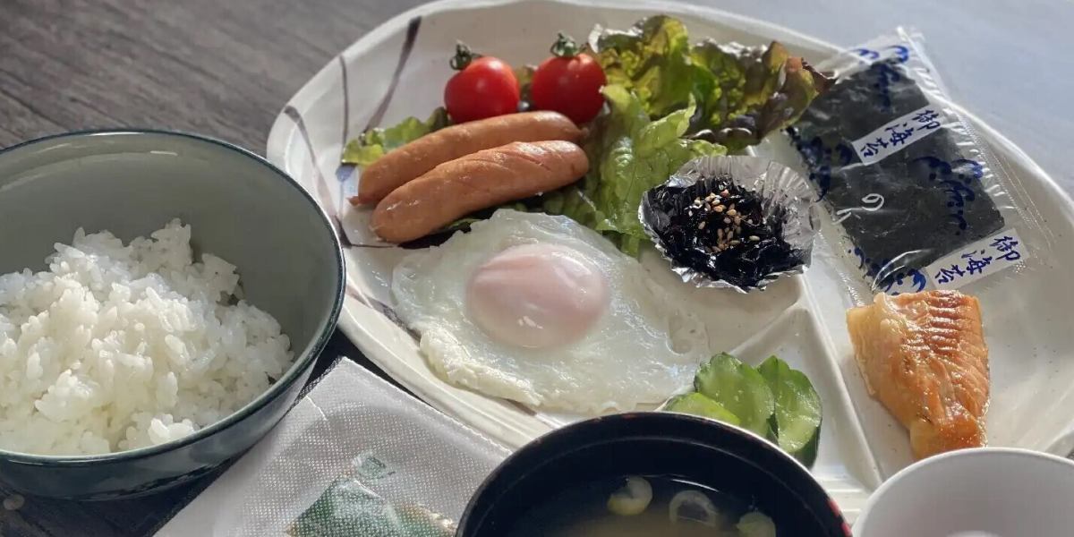 烤鱼 / 玉子烧(鸡蛋卷) / 维也纳香肠 / 明太子 / 纳豆 / 调味海藻(七滨)/ 泡菜 / 干饭 / 味噌汤 提供时间