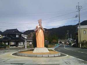 当館の目の前にある湯免バス亭に香月泰男のおもちゃの大きなモニュメントがつくられました。